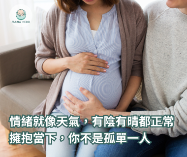 懷孕期間,生理變化直接影響心理感受,心情起伏是許多媽媽共同的經歷。身邊的人也許不理解,但只要勇敢表達:「情緒就像天氣,有陰有晴都正常;擁抱當下,你不是孤單一人。」適時和另一半或親密家人分享心情,互相拍拍手、擁抱或短短一句「想哭也沒關係,我在」,都能讓情緒得到支持與出口。